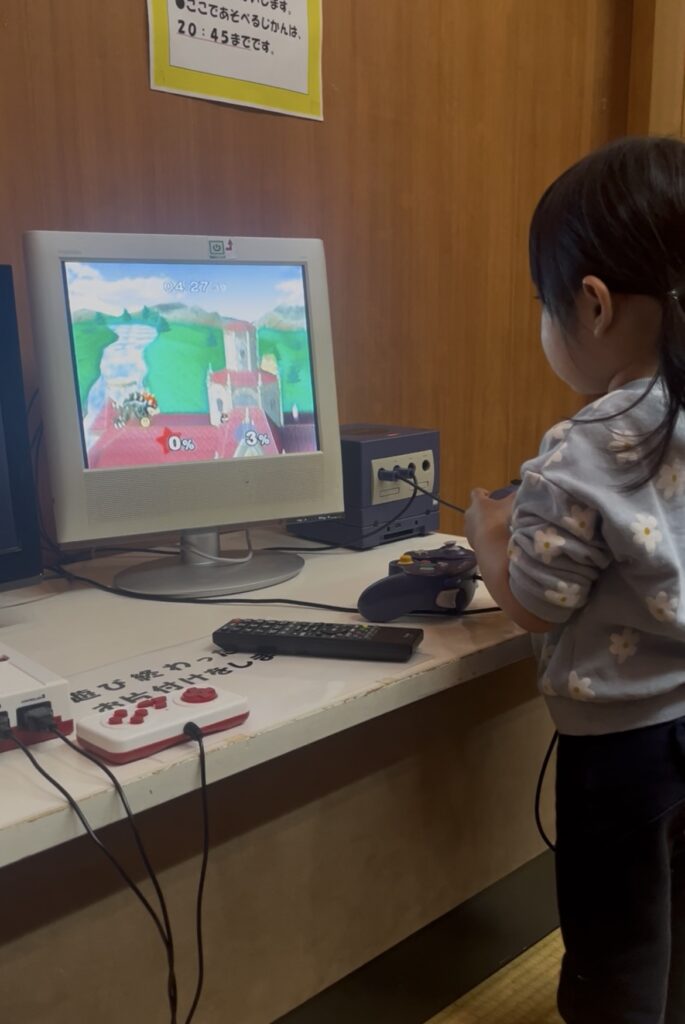 ご飯のあと、フロント横のお土産コーナーを見に行くと、隣に畳小上がりのゲームスペースを発見!