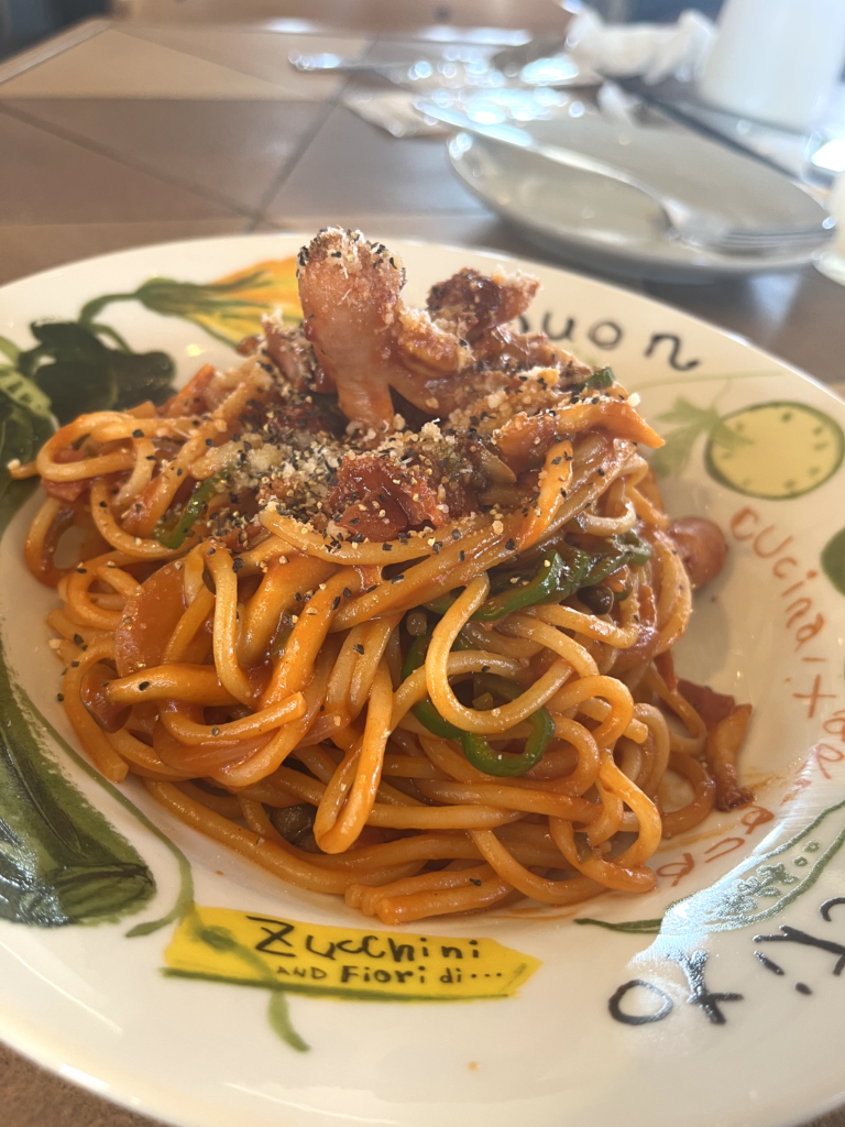 今回は、ホットドッグ、ナポリタン、プレーンパンケーキを注文して家族でシェアしました。