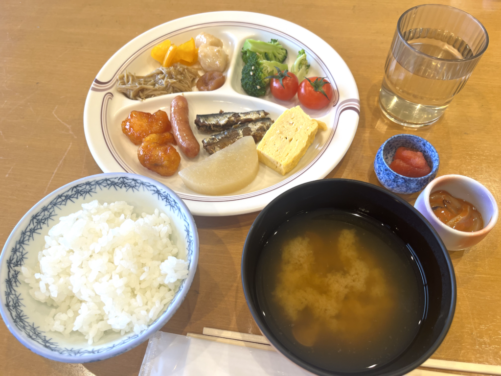 翌日、朝ごはんは食堂でバイキング形式でした。