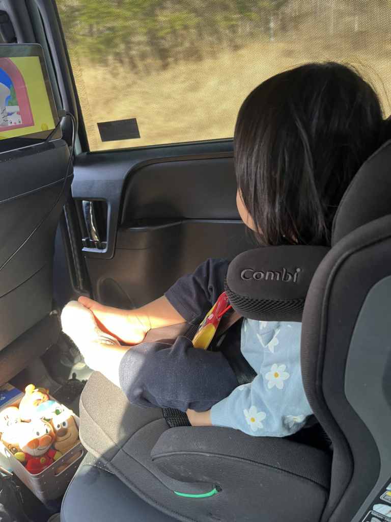 車はグズリやすいのでいつもタブレットで動画を見せています。